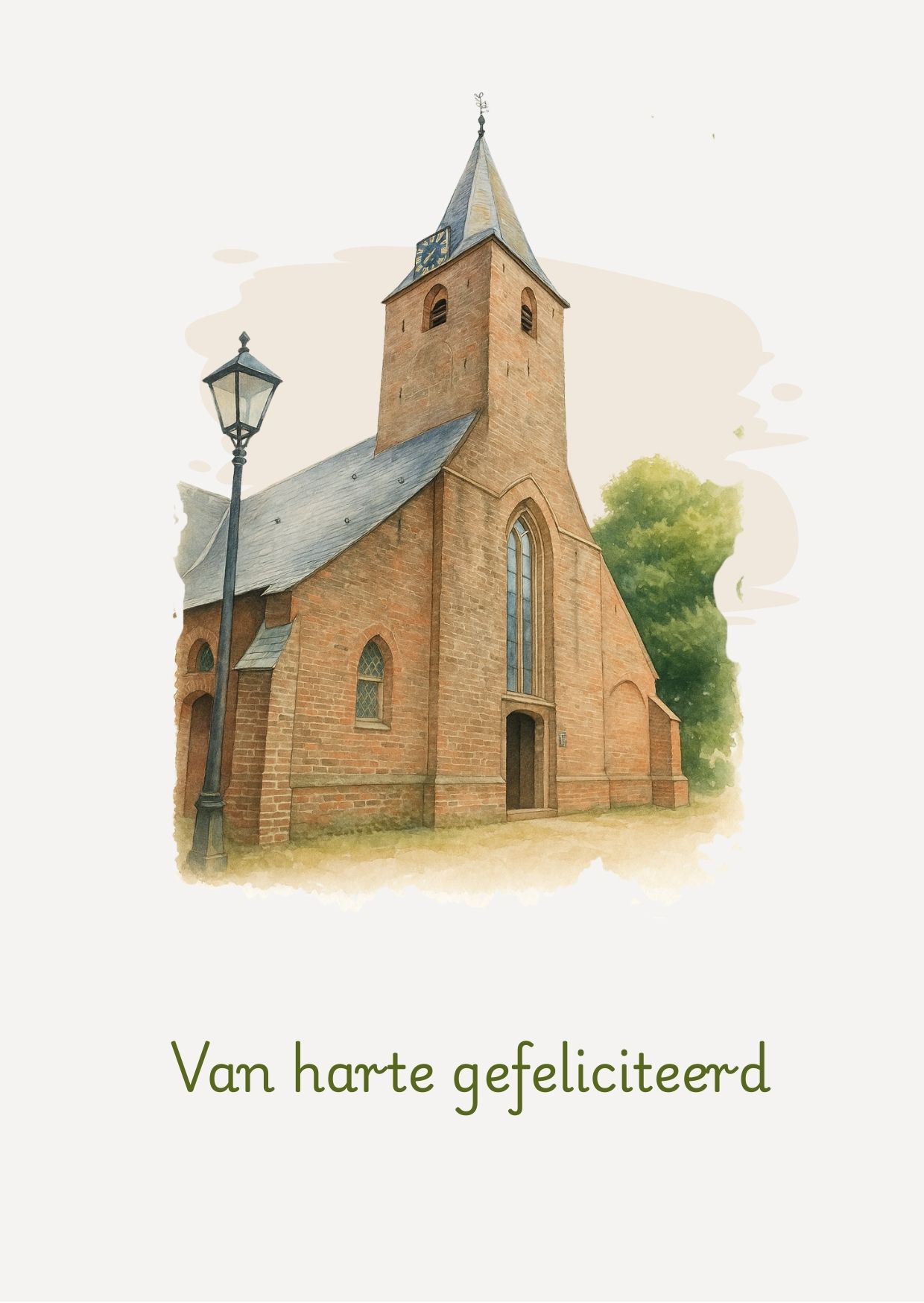 Dubbele ansichtkaart met envelop. Op de voorkant de hervormde kerk van Oene.