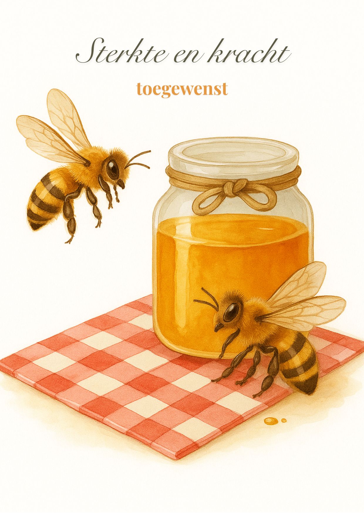 Dubbele ansichtkaart met envelop. Op de voorkant staan de woorden: ‘Sterkte en kracht’