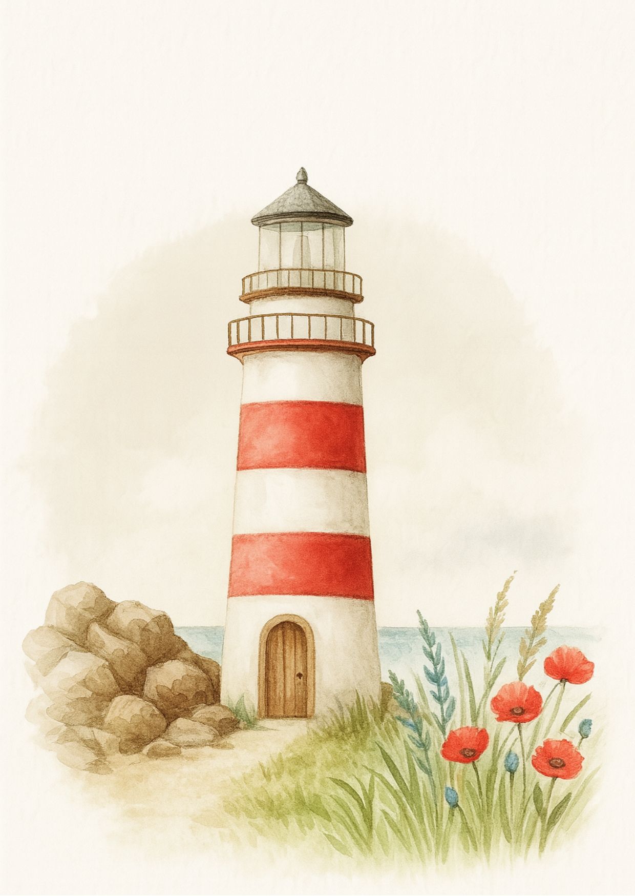 Dubbele ansichtkaart met envelop. Afbeelding van een vuurtoren.