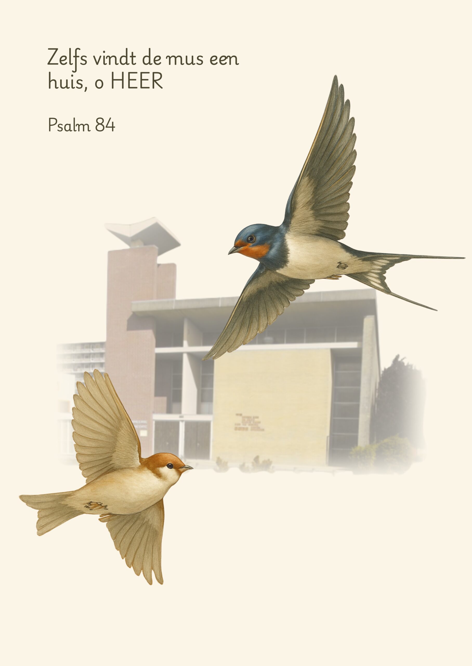 De mus en de zwaluw met op de achtergrond de Geref. Gemeente Groningen
